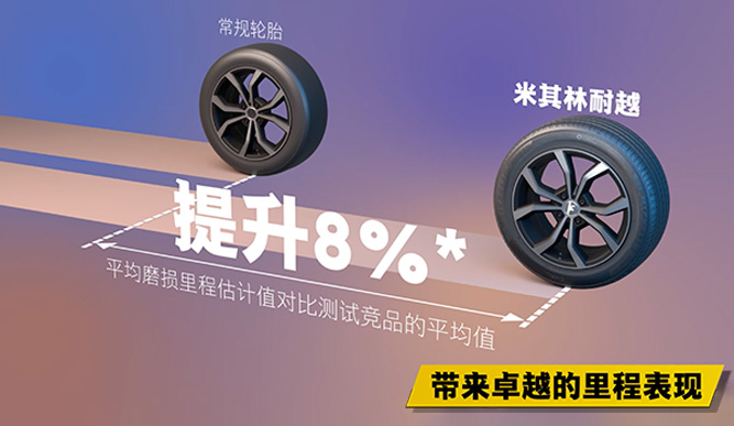 米其林 耐越 ENERGY MILE,平均磨损里程估计值对比测试竞品的平均值提升8%*