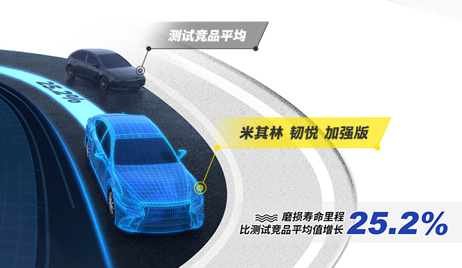 米其林 韧悦 加强版 ENERGY XM 2+,损寿命里程比测试竞品平均值增长25.2%*