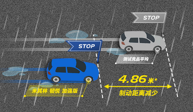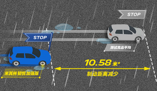 米其林 韧悦 加强版 ENERGY XM 2+,新胎湿地制动距离比测试竞品平均值缩短4.86米*